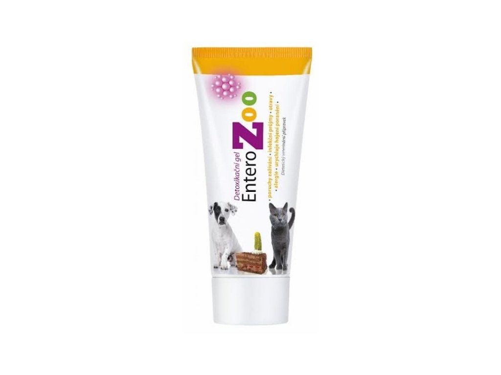 Gel Entero zoo slouží k celkové detoxikaci trávicího traktu u psů a koček, dokáže na sebe navázat středněmolekulární toxické látky, patogenní bakterie a alergeny a odvádí je z organizmu. Zabraňuje tak jejich usazování v těle a napomáhá tak udržet celý organismus a zažívání v přirozené formě. Vzhledem ke své bezpečnosti je možné gel podávat i štěňatům. Paníčci už si tak nemusí lámat hlavu s tím, co dělat, když jejich štěně má průjem nebo zvrací a nechce jíst nebo přinejhorším se něčím otrávilo. Entero zoo je vhodné podávat i při kožních problémech a alergických reakcích. Nelze přípravkem předávkovat, je vhodné i pro březí samice a mláďata.