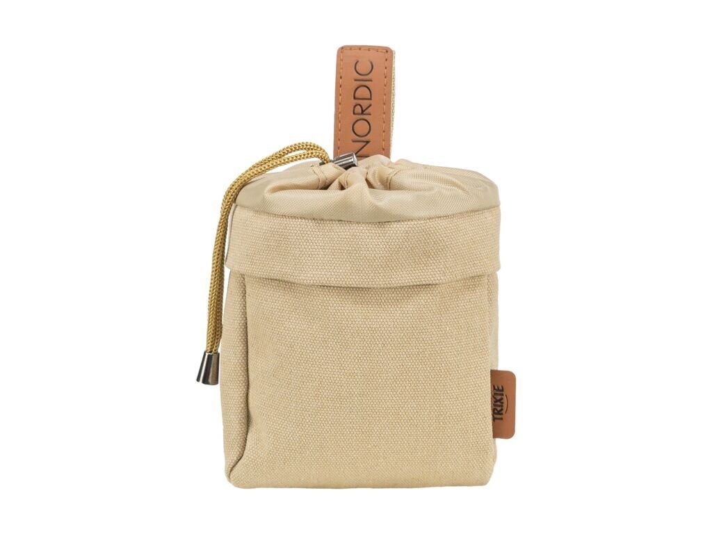 - Praktický pamlskovník Nordic- uzavírání na stahovací šňůrku, integrovaný dávkovač sáčků na exkrementy, zesílený okraj k rychlému vyjmutí pamlsků, s klipem a poutkem k upevnění k opasku