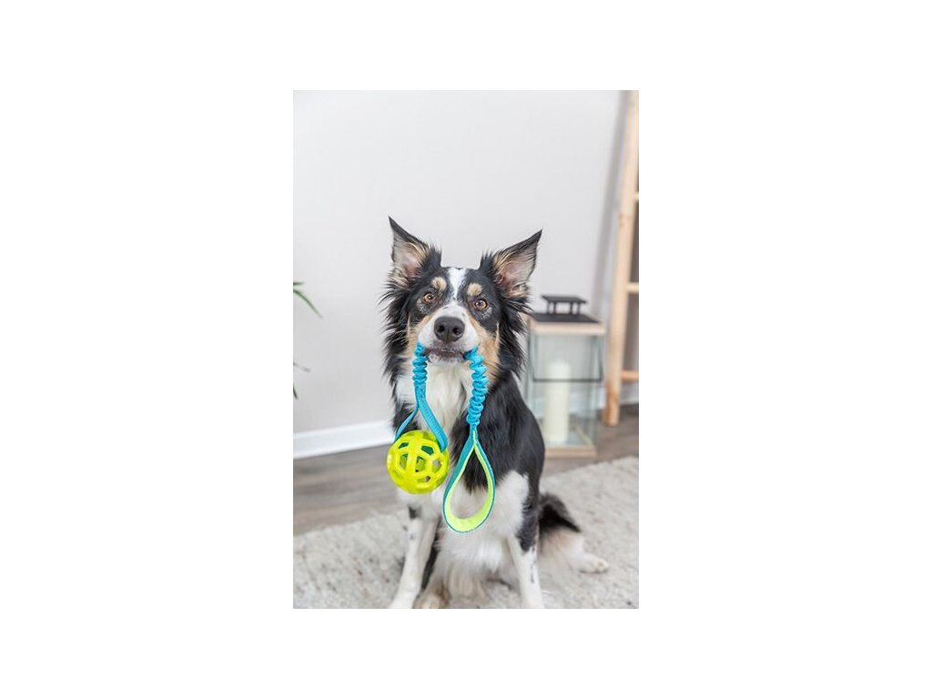 - Kvalitní přetahovadlo s míčem-popruh s odpružením a tlumičem nárazů rozměry: ø 7 cm/ 48 cm